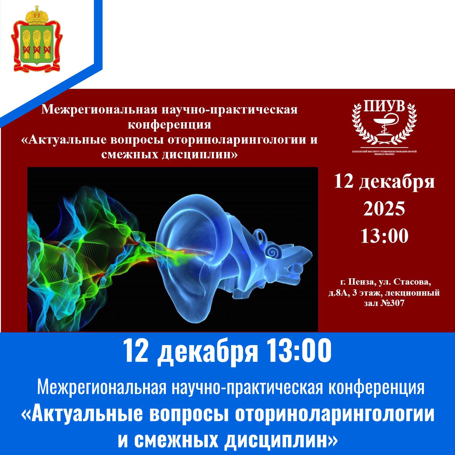 Конференция состоится 12 декабря 2025 года в 13:00. Место проведения очного формата: г. Пенза, ул. Стасова, д. 8А, 3 этаж, лекционный зал № 307.